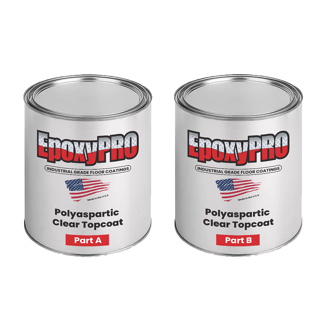 EPPS Polyaspartic is an 84% solids, two-component, high-solids polyaspartic clear topcoat with excellent chemical resistance, UV stability, abrasion resistance and hardness. This material is intended to be used as a high gloss topcoat over paint chips, decorative broadcasts or colored quartz broadcasts to provide an infinite array of color schemes or patterns.